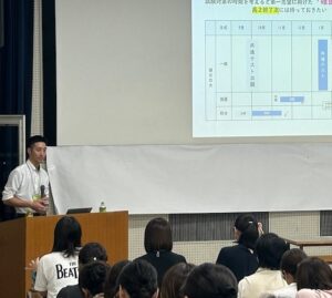 そして第3部では、本校進路指導部の中村先生より、近年の大学入試の傾向についてや、志望校の決め方、共通テストの対策などについて詳しく教えていただきました。